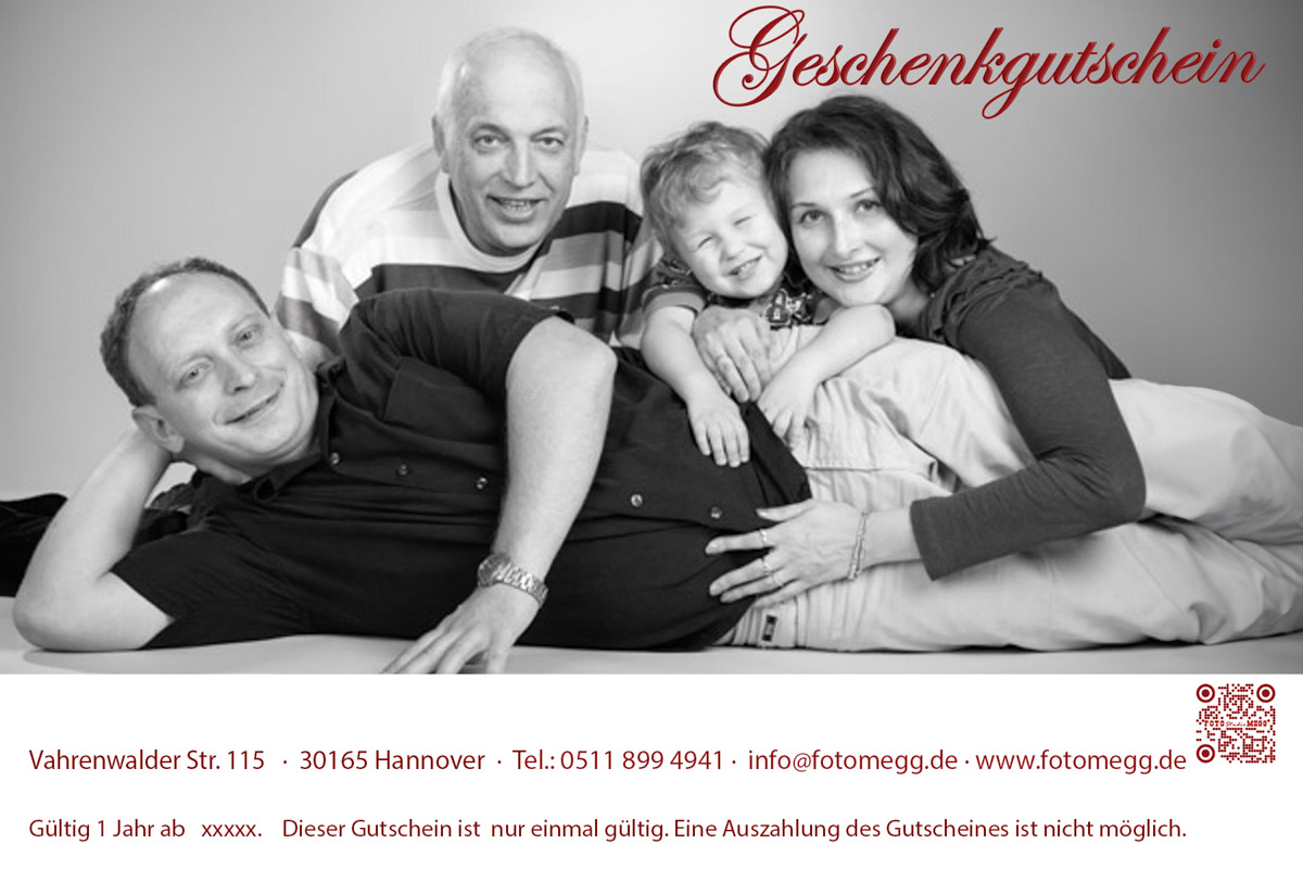 Bestelle hier einen Gutschein für ein professionelles Fotoshooting bei Foto Studio Megg.